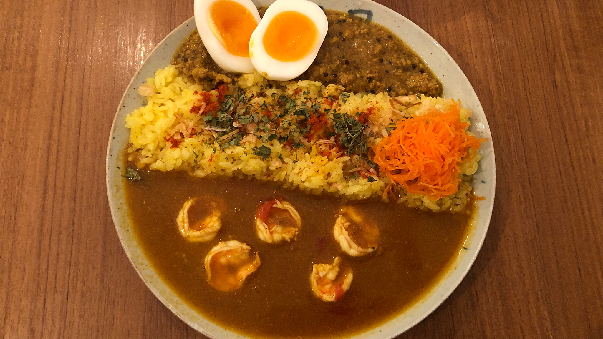 カレー激戦地の下北沢でお気に入りのカレー屋を探す日々ですが、中でも気になる「カレーの店 八月」に来ました。小さなお店ですが奥のテーブル席に座れました。券売機に「おすすめ」記載のあったあいがけキーマとゆ […続きを読む]
